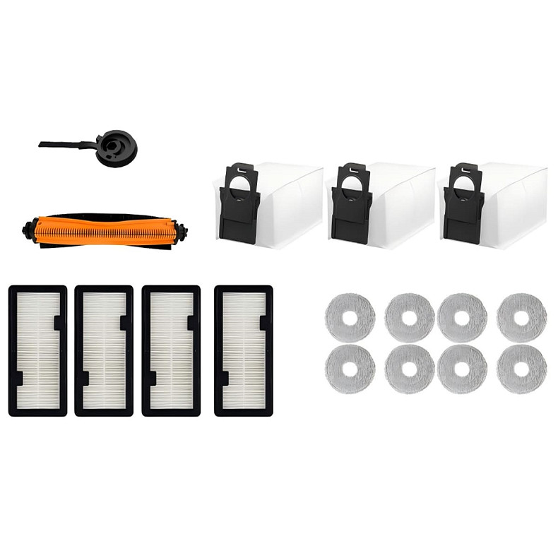 Змінний мішок х3, HEPA-фільтр х4, Бічна щітка, Насадки для миття підлоги x8, Щітка комбінована (V-подібна), Упаковка
